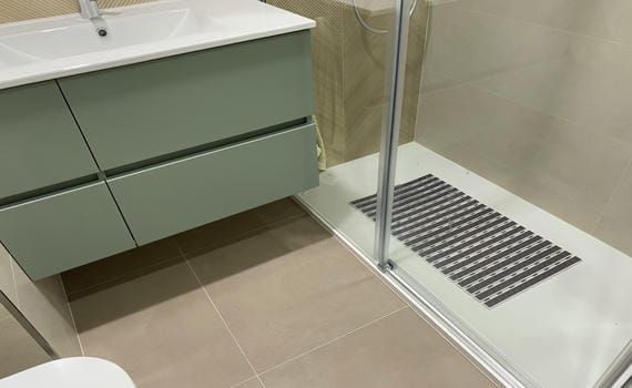 Antes de cerrar paramentos, se aplica un sistema de impermeabilización continuo (membrana líquida o lámina) en suelo y paredes de la zona húmeda, con bandas y esquinas reforzadas. Se coloca el plato de ducha extraplano antideslizante, cuidando la planeidad y la conexión con el desagüe. Se sellan encuentros críticos y, cuando procede, se realiza prueba de estanqueidad temporal para confirmar que no hay filtraciones. Esta fase es clave para la durabilidad de la reforma de cuartos de baño en Aluche.